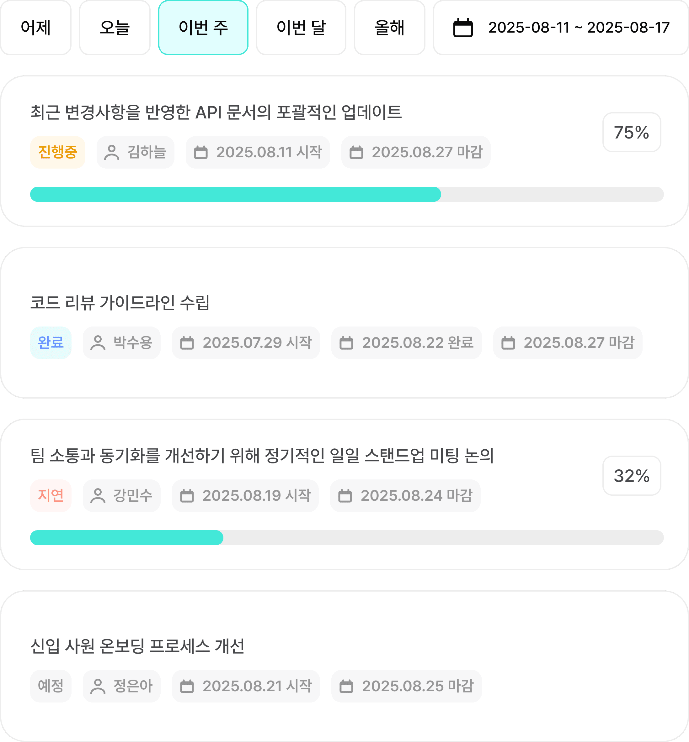 모든 팀원의 실행방안 진행률을 빠르게 파악하고